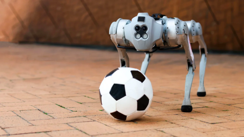 Dribblebot是MIT的计算机科学和人工智能实验室(CSAIL)开发的一个机器人,可以用四条腿在不同的地形上运球。它是在MIT的不可能人工智能实验室(Improbable AI Lab)设计的,目的是探索机器人腿部在复杂环境中的移动能力。Dribblebot可以在沙子、泥土、砾石和雪地上灵活地控制足球,也可以在摔倒后自己站起来继续运球。它还可以通过头部的摄像头识别足球,并跟随人类运球者的动作。Dribblebot使用了一种基于强化学习的方法,通过模拟训练来学习如何运球。研究人员在模拟器中设置了不同的物理参数,让Dribblebot尝试不同的运动序列,并根据其表现给予正面或负面的反馈。经过数百天的模拟训练,Dribblebot就能在真实世界中运球了。(TechEBlog)