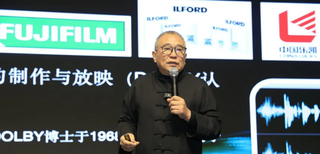 活动正式开始后,首先由中国影视摄影师学会名誉会长、北京电影学院教授穆德远老师进行了主题为《从影视创作谈音视频标准》的学术分享。穆老师先后回顾了电影胶片传统洗印工艺和数字中间片的制作流程,由此对比了传统胶片时期与当下数字时期摄影师对影像掌控方式的异同,展望了数字影像技术的广阔发展前景。