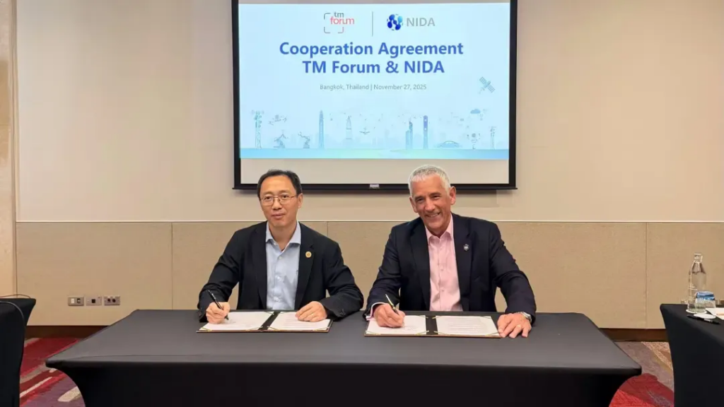 11月27日,NIDA与国际电信管理论坛(TM Forum)在泰国曼谷签署战略合作备忘录,宣布在自智网络(AN)、开放数字框架(ODA)领域开展标准合作,并联合推进行业认证互认。