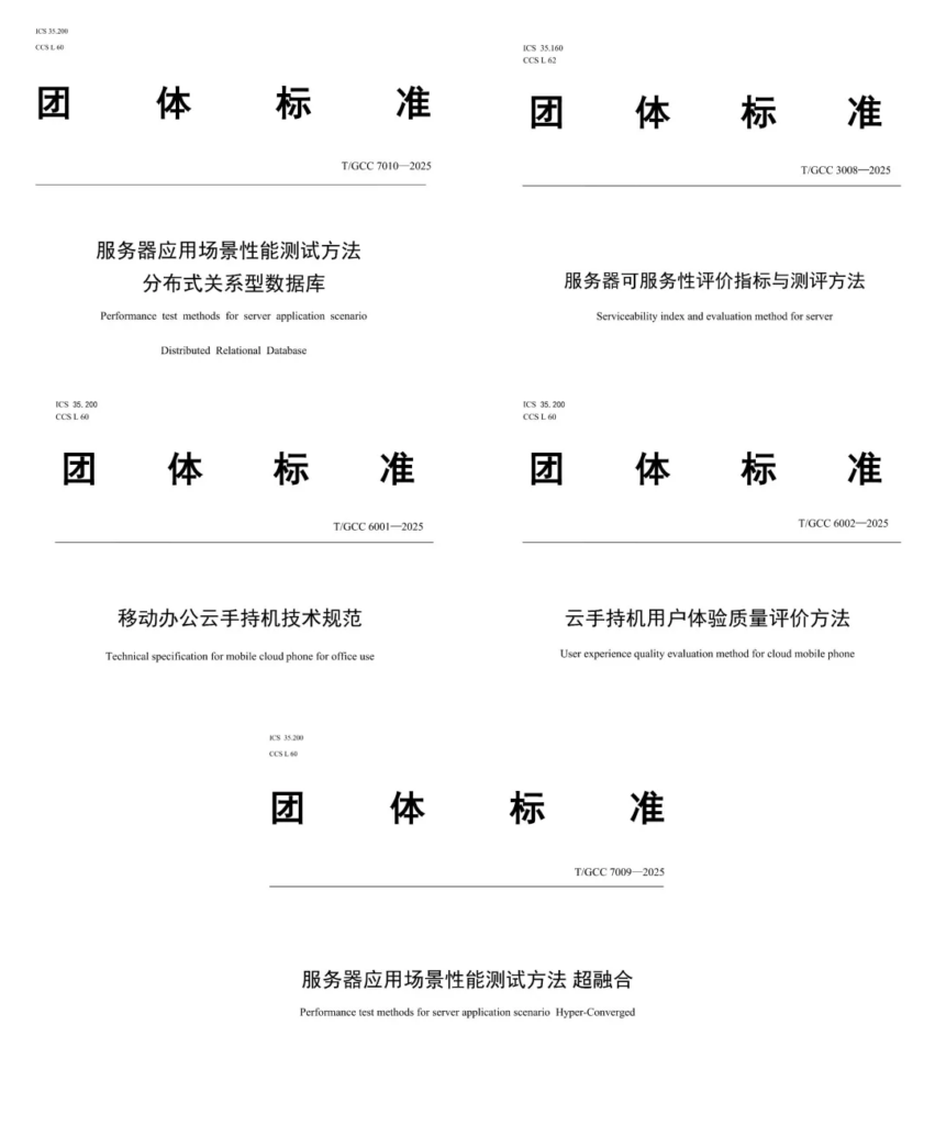 GCC近日发布五项团体标准:《服务器应用场景性能测试方法 分布式关系型数据库》(T/GCC 7010-2025)、《服务器应用场景性能测试方法 超融合》(T/GCC 7009-2025)延续服务器性能测试标准序列;《移动办公云手持机技术规范》(T/GCC 6001-2025)、《云手持机用户体验质量评价方法》(T/GCC 6002-2025)形成云手机”技术+体验”双支撑;《服务器可服务性评价指标与测评方法》(T/GCC 3008-2025)构建运维效率评测体系。