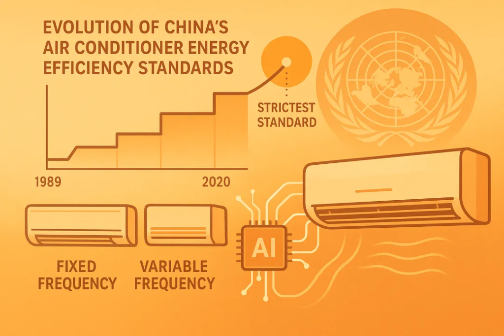 插一段背景:中国空调能效标准自1989年首版以来历经七次修订。2020年的新国标被称为“史上最严”,成功推动市场从定频转向变频。