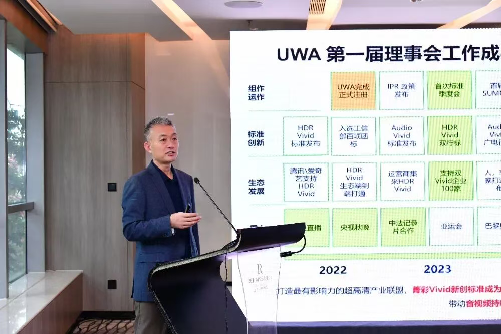 首先,UWA联盟秘书长张文刚回顾了联盟过去四年取得的关键进展,并分享了联盟2025年在标准研制、车载、4K频道建设等方面的最新成果。打造有竞争力的标准是联盟的核心工作,2026年,联盟将继续围绕加强标准竞争力建设、生态建设、国际化推进等8个方向重点开展工作。