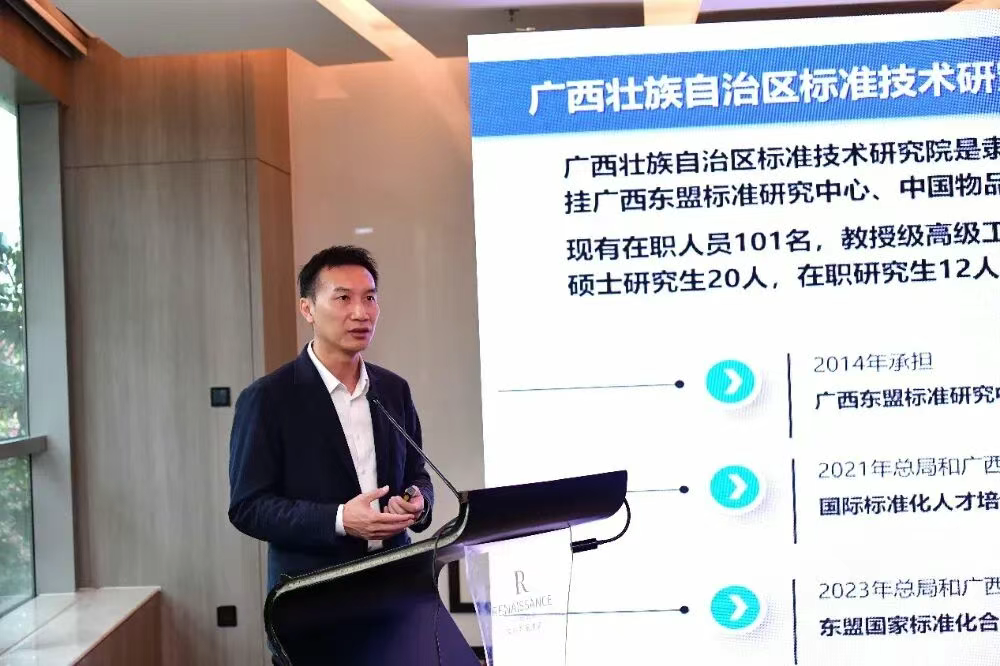 广西壮族自治区标准技术研究院副院长林建业分享了题为《中国-东盟国家标准化合作交流路径探索》的专题报告。他结合广西标准院与东盟国家合作交流的实践经验,深入分析了东盟国家标准化体制机制,并通过与东盟国家标准化合作的成功案例,提出了与东盟国家标准互联互通的务实合作建议,为联盟标准国际化提供了重要参考。