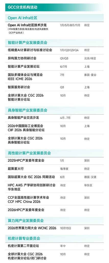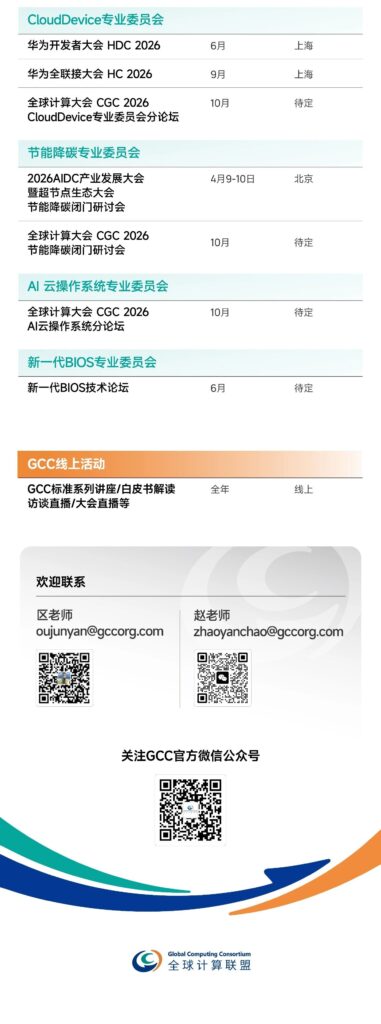全球计算联盟(GCC)正式公布「2026 全年活动预排期」,一整年的产业机会点、资源对接窗口提前摆上日程!本年度,GCC将带来旗舰大会、专题论坛、企业探访等等等等等多类活动!覆盖算力基建、智能计算、具身智能、机密计算、高性能计算多个核心领域,全球计算同仁速存!