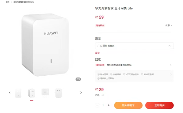 129元!华为鸿蒙智家蓝牙网关Lite发布:即插即用,支持蓝牙Mesh