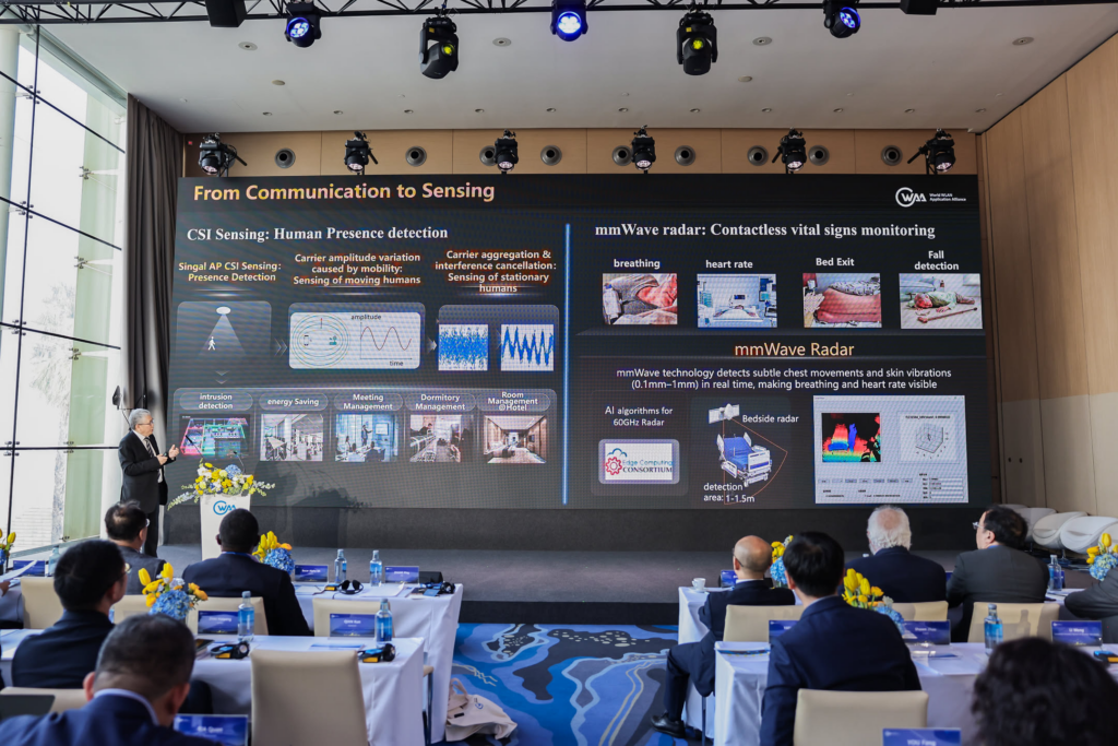 2026年3月2 日,2026世界移动通信大会(MWC)期间,在“WLAN全球产业论坛2026”上,WAA理事长张平发表“AI时代的WLAN正实现通信、感知、安全融合”相关演讲。随后,WAA携手全球多家产业组织举行无线智联感知产业生态联合工作组成立仪式。无线智联感知产业生态联合工作组由WAA(世界无线局域网应用发展联盟)与NIDA(全球固定网络创新联盟)联合发起成立,旨在汇聚全球产业链力量,共同推动无线智能感知技术的创新与产业化进程。通过定义WLAN+X(感知、安全等)融合架构与标准体系,建设开放、创新的产业生态,加速千行百业智能化转型升级。