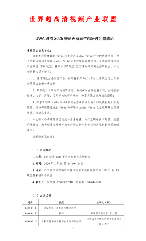 1. 主题UWA联盟2026菁彩声家庭生态研讨会