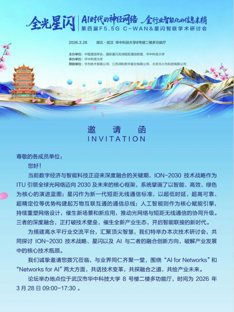 诚邀参会|第四届 F5.5G C-WAN & 星闪智联学术研讨会